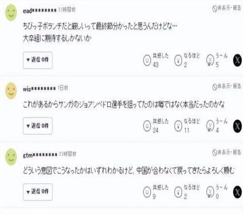 還有不少球迷感慨:當年在亞冠對中國球隊踢得游刃有余,早就想到會(huì )有這么一天被中國球隊看上,本來(lái)還想著(zhù)他已經(jīng)好不容易適應了日本聯(lián)賽節奏,新賽季就能爆發(fā),結果卻走了。