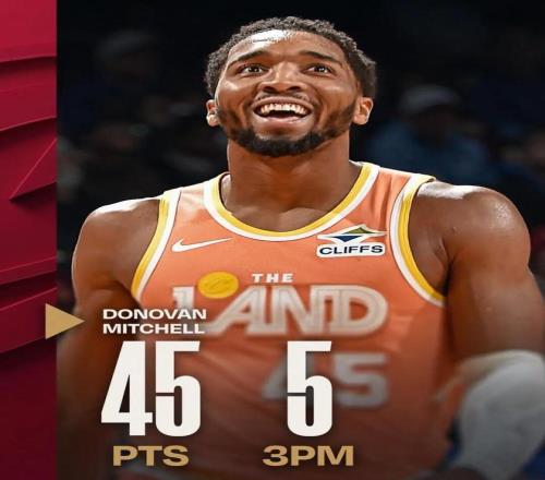 這場(chǎng)比賽,騎士當家球星米切爾再度發(fā)揮出色:全場(chǎng)出戰35分鐘,投籃25中15,三分8中5,罰球12中10,拿下45分4籃板4助攻1搶斷。