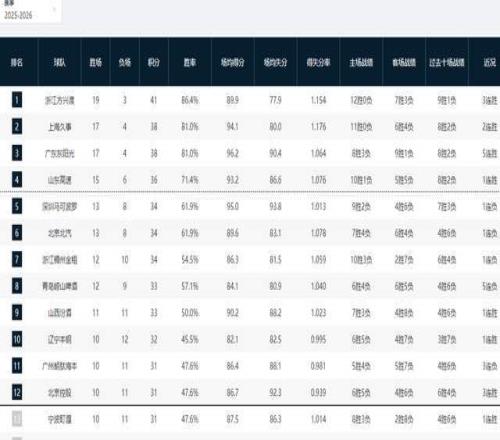 CBA最新排名出爐!廣廈第1太穩,山東殺進(jìn)4強,遼籃重返季后賽區