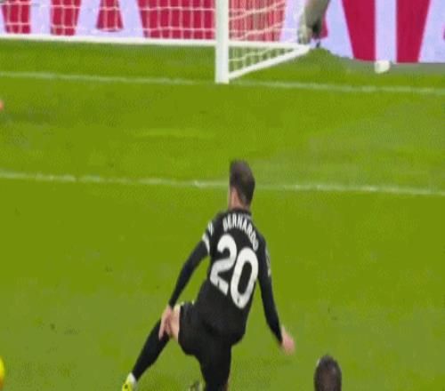上半場(chǎng)補時(shí)階段,德拉古辛后場(chǎng)傳球失誤,羅德里斷球直塞,貝爾納多-席爾瓦禁區內鏟傳,無(wú)人盯防的塞梅尼奧輕松推射破門(mén)。進(jìn)球之后,塞梅尼奧空翻慶祝,卻落地不穩倒在了草坪上。