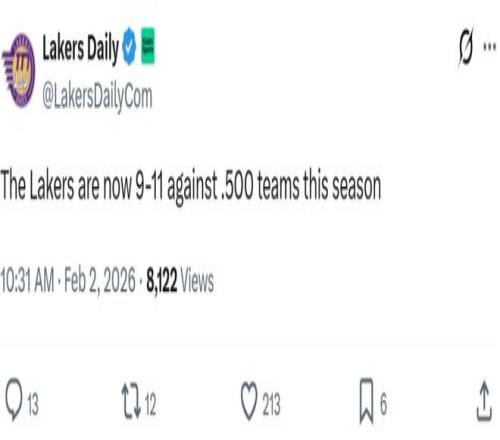 輸給尼克斯之后,湖人本賽季對陣勝率超過(guò)50%的強隊時(shí),戰績(jì)跌至9勝11負,而對陣弱旅的戰績(jì)則為20勝8負。
