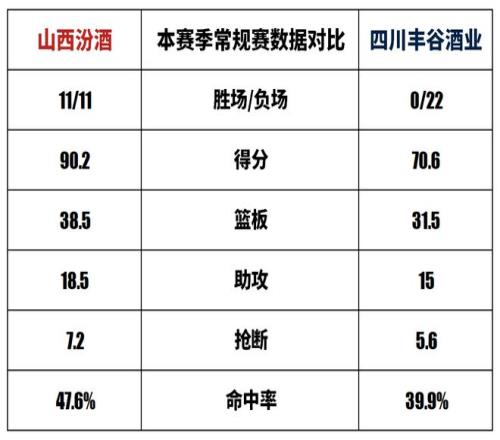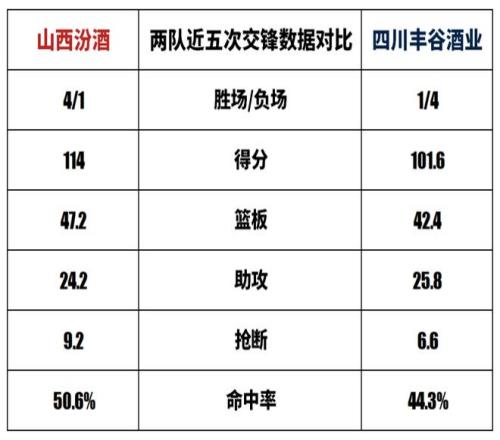山西汾酒與四川豐谷酒業(yè)歷史上一共交手32次,山西汾酒19勝13負。本賽季兩隊交手1次,山西汾酒1勝0負。